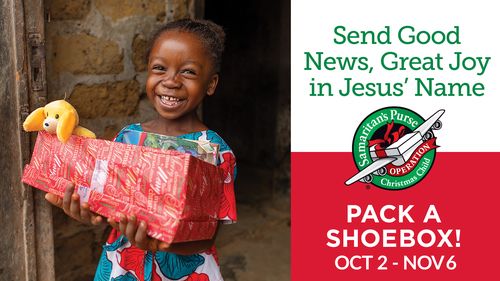 Operation Christmas Child Shoebox has begun. This is an opportunity for you to send fun toys, school supplies and hygiene items to a needy child somewhere around the world. While at the same time you will be sharing the Good News of Jesus Christ with him or her. You can pick up a shoebox on Sunday and bring it back by November 6th or you can build a shoebox online using the link below. Help us reach our goal of sending 200 shoeboxes and send good news of great joy in Jesus' name!
